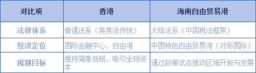 香港税制以“低税率+简单税种”为核心,依赖成熟的普通法体系;海南则通过政策试点逐步开放,税制仍在动态调整中。