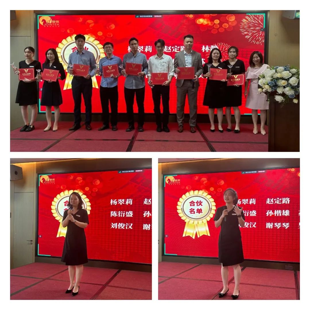 随后,激动人心的颁证环节开始了。在庄重的音乐声中,特邀嘉宾为入选的合伙人颁发了证书及奖杯。每位合伙人依次上台接受这份荣耀,他们的脸上洋溢着喜悦与自豪。同时,公司邀请了多位合伙人代表上台发言,他们分享了加入合伙人计划的感受与期待,以及对公司未来的美好愿景。这些发言充满了对未来的憧憬与决心,也表达了对公司深深的感激之情。