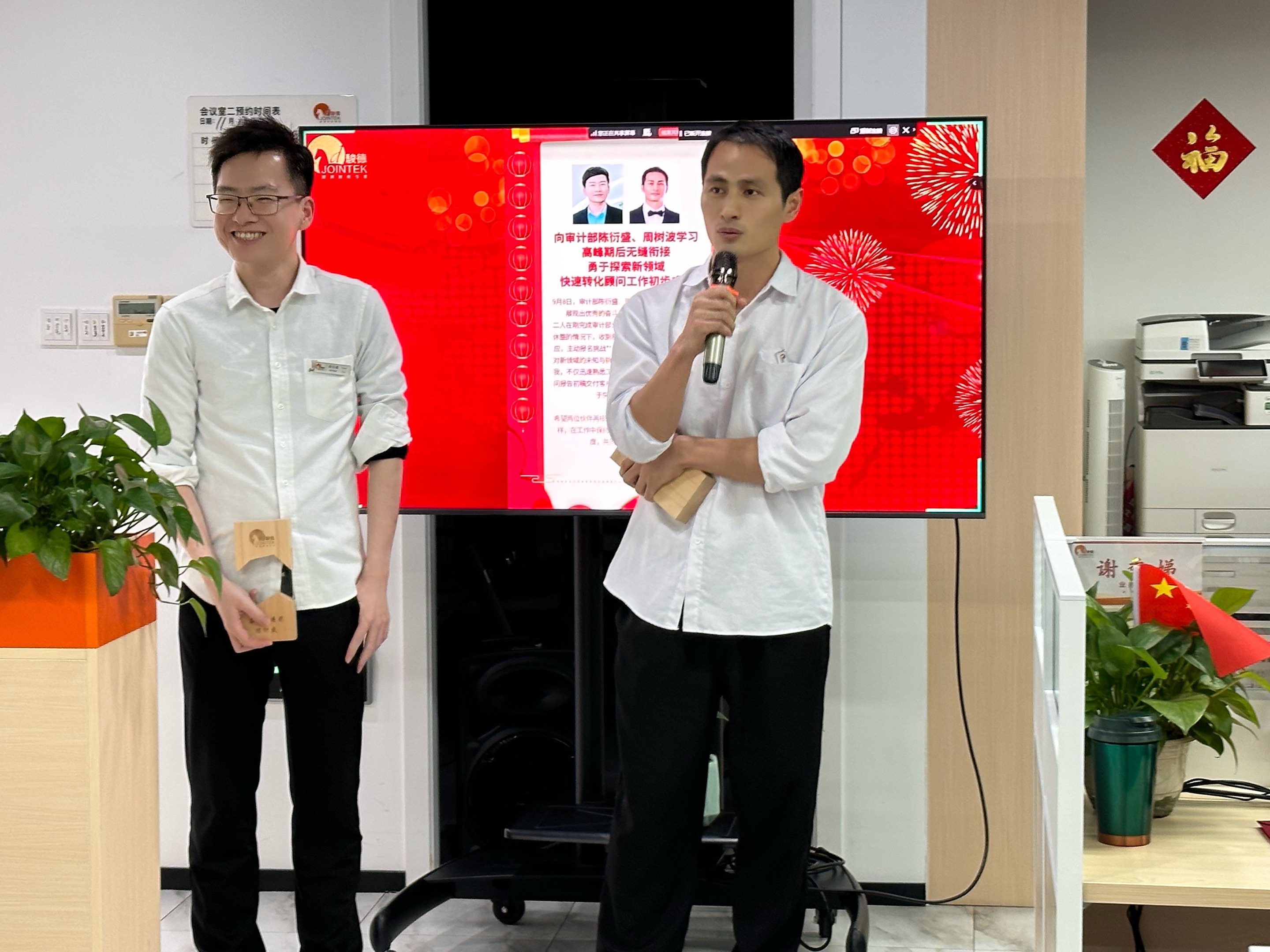 随后,李总对获奖员工的辛勤付出、专业素养及跨界探索精神给予高度肯定,更欣喜于大家在服务客户的过程中发掘职业理想,实现个人成长与企业价值的同频共振。Tim 总监向获奖者送上热烈祝贺,同时鼓励全体审计部同仁以优秀者为标杆,在专业上持续精进、在服务上追求极致,凝心聚力再创佳绩。