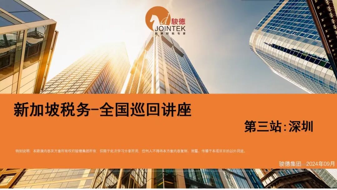 随着金秋的脚步悄然而至,骏德集团精心筹备的新加坡税务巡回讲座系列在上海与成都两地接连取得了辉煌的成果。不仅展现了新加坡税务的智慧魅力,更为参会者带来了前所未有的税务知识盛宴,赢得了客户的一致好评与热烈追捧。深圳站原计划仅于9月25日下午举办一场讲座,但鉴于上海与成都站讲座的热烈反响及众多客户的强烈需求,为了确保每位参会者都能获得最佳的体验,骏德集团决定在深圳站增设上午场次,即9月25日上午与下午连续举办两场讲座。